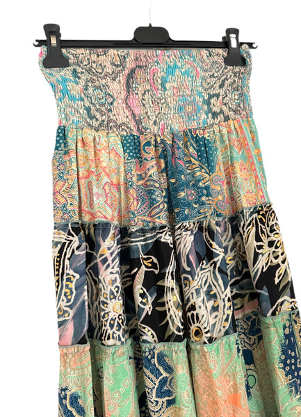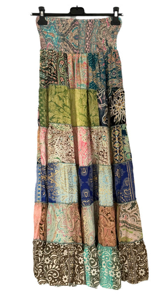 Kjol / klänning med smockresår , alla kjolar är unika och ingen är den andra lik , det är den du ser i bild du får vid beställning , sista bilden är så du ser hur den sitter som klänning , det är alltså den färg som du ser på dom tre första bilderna som du får.