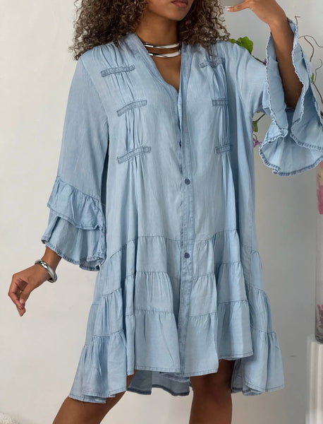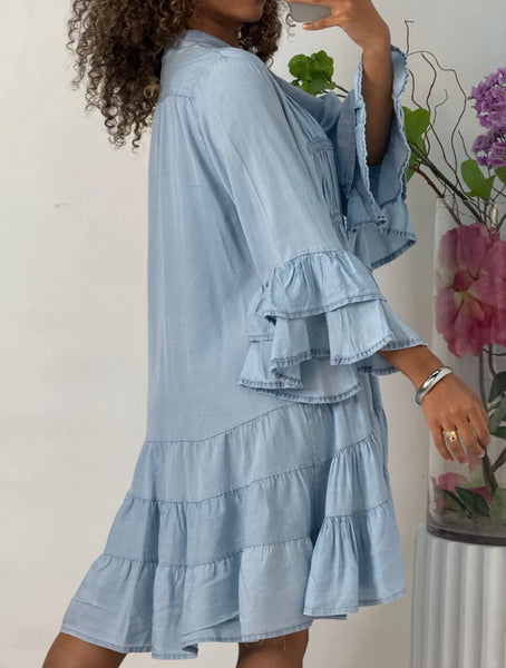 Super snygg jeansklänning med fina detaljer , mjuk och skön Tencell.
