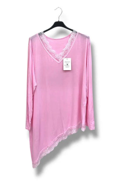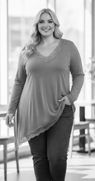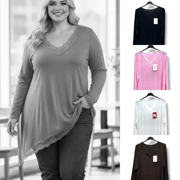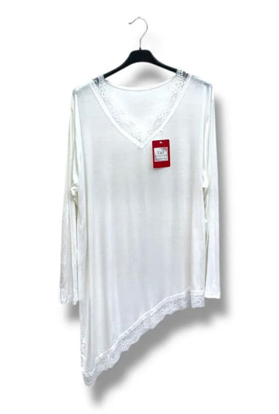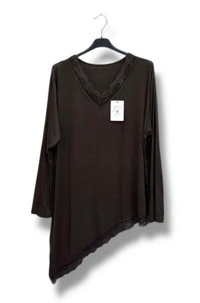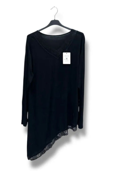 Super snygg topp med spetsdetaljer , asymmetrisk nertill., mycket stretchig.