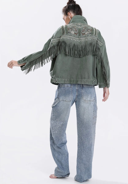 Riktigt snygg jacka med fransar och snyggt arbetat ok i bak.