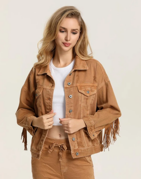 Riktigt snygg jacka med fransar och snyggt arbetat ok i bak.