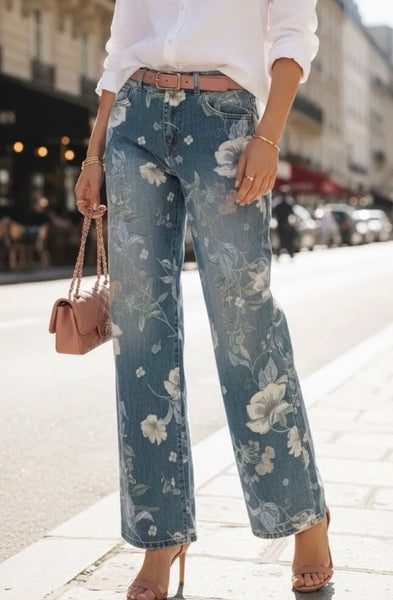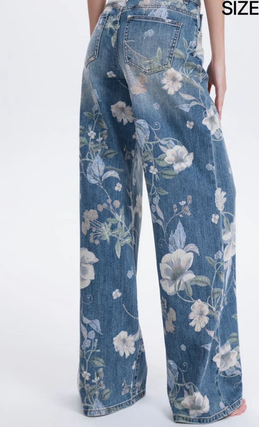 Vårens snyggaste jeans med blommor , mjuka sköna i tvättade tyg , vida ben samt fickor fram och bak